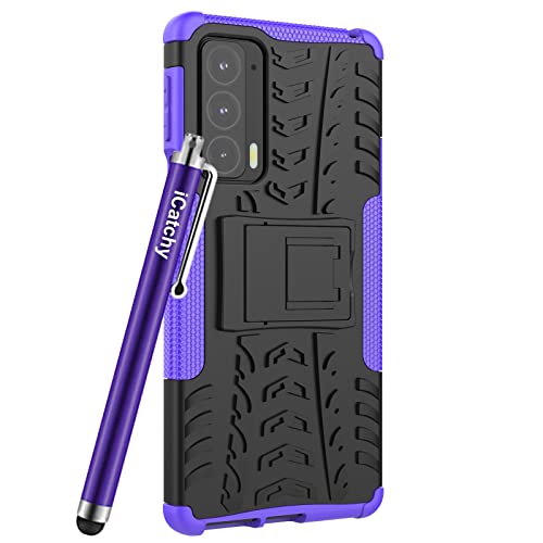 Icatchy Per Motorola Edge 20 Pro Custodia Heavy Duty Duro Duro Doppio Strato Ibrido Cavalletto Cover (Viola)