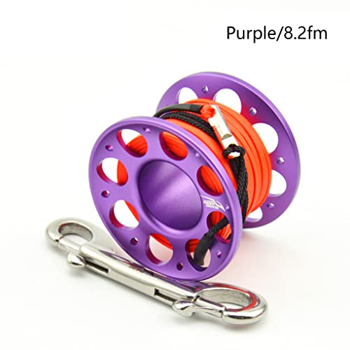 ICDKOYK Mantieni Le Immersioni Bobina Bobina Portatile Colore Solido Corda in Poliestere Reels Atnessionista Pesca Accessori subacquei con Gancio a Doppio fine, Viola, 15m