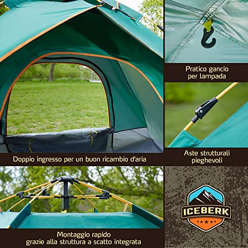 Iceberk Tenda da campeggio per 2-3 persone | Tenda 'pop-up' rapida e automatica per festival, campeggio e caravaning - Montaggio rapido simile a una tenda avvolgibile (verde)