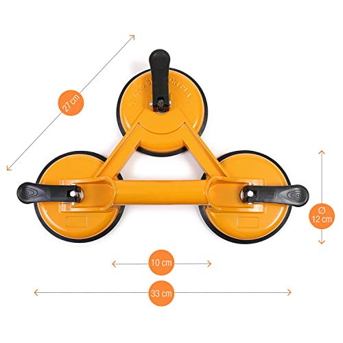 Iceberk Ventosa (2 Pezzi) - Pratica ventosa per vetro per il sollevamento e trasporto sicuro di piastrelle, lastre di vetro, marmo e oggetti lisci (3 ventose, max. 135Kg)