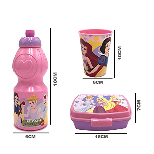 ICELAND Set merende porta merenda bambini in plastica bottiglia da 400 ml 1 tazza 1 contenitore (Principesse)