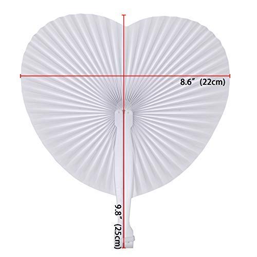 Icelus - Ventagli di carta pieghevoli, ideali per feste e matrimoni, come omaggio per gli ospiti o decorazione da parete, colore: bianco, forma a cuore, 60 pezzi