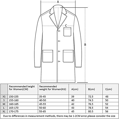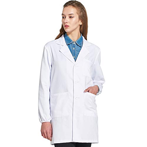 Icertag Camice Bianco da Laboratorio Donna, medico cappotto, camice per le donne, camice bianco per le signore, adatto per studente laboratorio infermiera cosplay abito di cotone (Small)