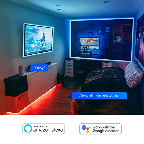 CONTROLLO VOCALE: striscia led intelligente WiFi è compatibile con Amazon Alexa (Amazon Echo / Dot / Tap) e Google Assistant. Non solo puoi accendere o spegnere le strisce LED con i comandi vocali, ma puoi anche cambiare i colori e la luminosità.