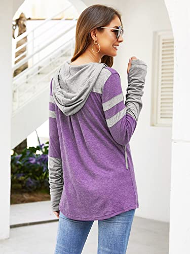 IChunhua Felpa con cappuccio da donna con fori per il pollice a maniche lunghe T-shirt con coulisse e tasche S-XXL, Viola, L