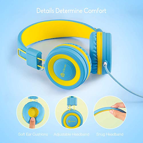 IClever Bambini Cuffie, Sicuro Filo Bambini Head Set Sopra l' Orecchio, 85 DB Volume Limited, Bambini Cuffie per iPhone, iPad, MP3, MP4, Android Smartphone Tablet Laptop con 3.5 mm Jack PC