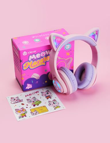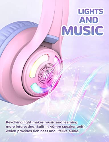 IClever Cuffie Bluetooth per Bambini, BTH13 Cat Ear LED Cuffie Wireless Bambini con Mic, 50 Ore di Riproduzione, 74/85/94dB di Limitazione del Volume