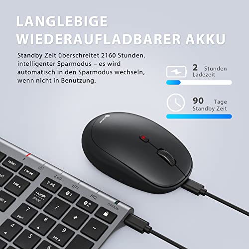 IClever Tastiera e mouse Bluetooth, tastiera e mouse ricaricabili, doppia modalità, tastiera wireless e combinazione di mouse ultrasottile, tastiera multi-device
