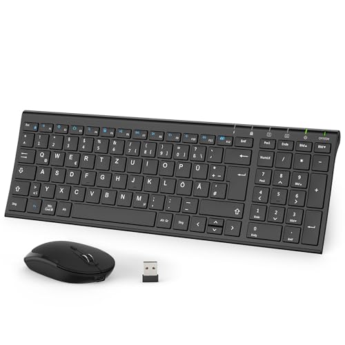 Potente Wireless - Connessione: Non fare a se stesso onere con cavo a disagio. Grazie al taglio-bordo 2, 4 - GHz - La tecnologia wireless consente ultimate - trovare stabilità. È possibile utilizzare la tastiera e il mouse si collegano rapidamente al dispositivo - senza accoppiamento richiesto! Con una gamma di connessione generosa di 10 metri, è possibile la tastiera in qualsiasi punto della stanza.