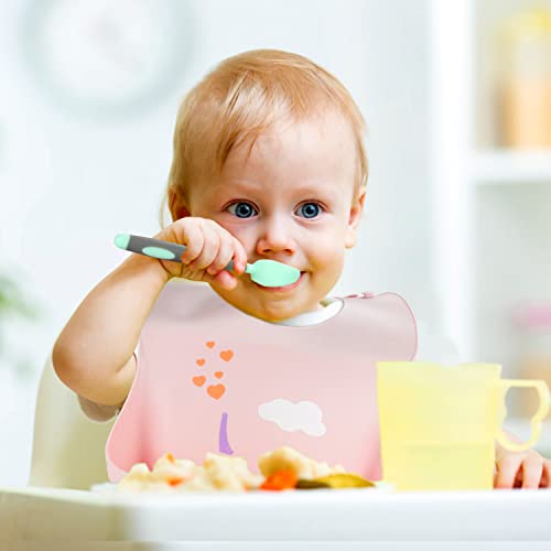 ICNOW Bavaglino Silicone con Tasca, 3 Pezzi 4 Dimensioni Regolabili Bavaglini Bambini Pappa Morbidi con Cucchiaio e Forchetta Impermeabile Facili da Pulire con Raccoglipappa per Ragazzi e Ragazze