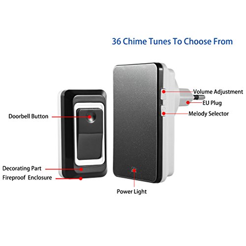 Icoco campanello senza fili elettrico impermeabile (3 livelli di Volume, 36 Melodia, Range di portata di 300 m)