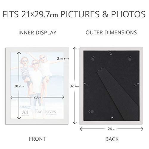 Icona Bay Cornice per Foto A4 Bianca, Robusta Cornice per Foto in Legno Composito 29,7 x 21 cm, Design Elegante, da Tavolo o Montaggio a Parete, Collezione Exclusives
