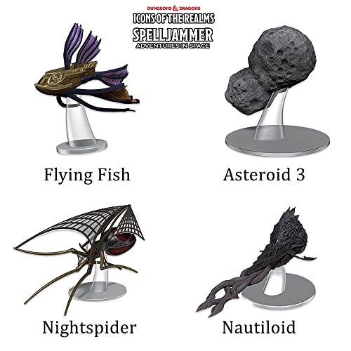 Una collezione di navi preferite dell'ambientazione Spelljammer. Questo set include: Nautiloid, Nightspider, Asteroid 3, Flying Fish.