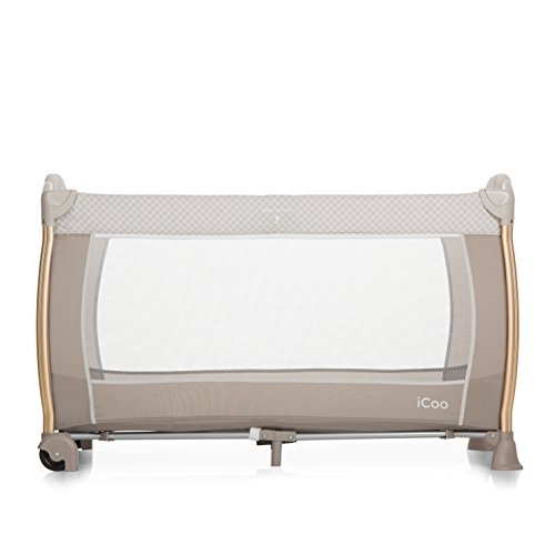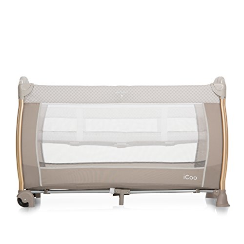 ICOO Starlight Lettino da Viaggio dalla Nascita a 15 kg, con 2 Livelli, Fasciatoio, Porta Oggetti, Ruote e Borsa di Trasporto, Pieghevole Compatto - Beige