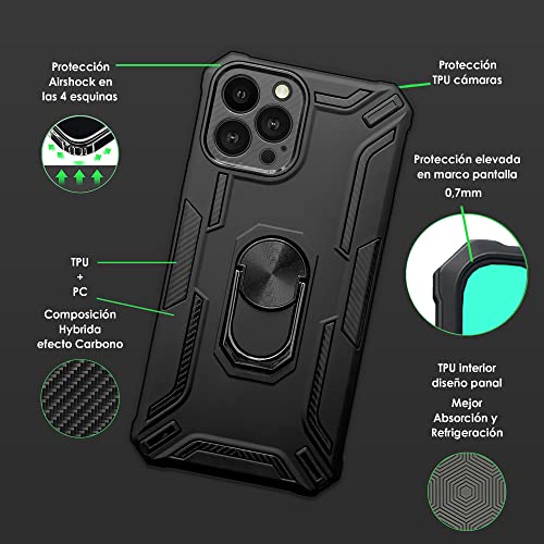 ICOVERI Custodia iPhone 13 Pro MAX Custodia Protettiva Cellulare Grado Militare con Anello Presa e Supporto Metallico Magnetico 360 Gradi Cover Compatibile con iPhone 13 Pro MAX Antiurto TPU-PC. Nero