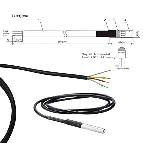 * Impermeabile e umidità , Rilevamento rapido della temperatura, misurazione accurata della temperatura , Cavo di uscita: rosso (VCC), giallo (DATA), nero (GND)