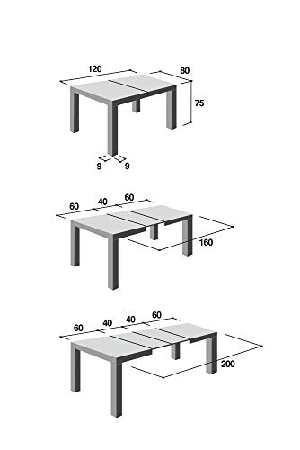 Icreo Tavolo allungabile moderno MORFEO ROVERE RUSTICO cm120x80 H75 con 2 allunghe cm.40