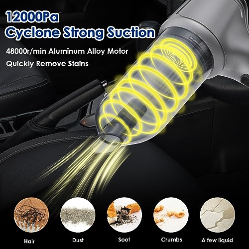 Icyant Aspirabriciole Senza Fili, 12000Pa Aspirapolvere Portatile 3 in 1 Aspirabriciole Potente 120W 4000mAh Rechargeable Mini Aspirapolvere Mano per Computer Tastiera Auto Ufficio Animali Domestici