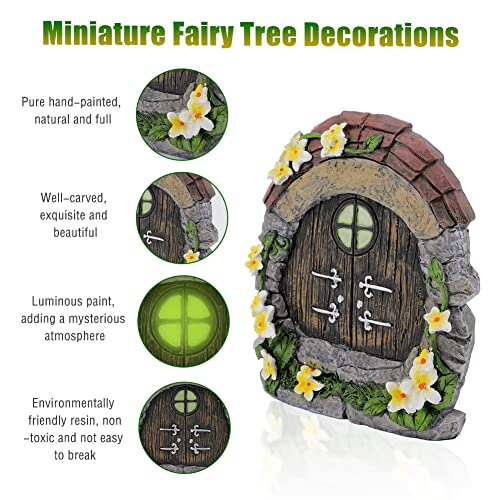 Icyant Porta in Miniatura Fata, Resistente Alle Intemperie Porta Delle Fate e Finestre per Alberi Luminescente Kit Porta e Finestre Fata Mistico Fairy GNOME Casa in Miniatura Statue Decorazione