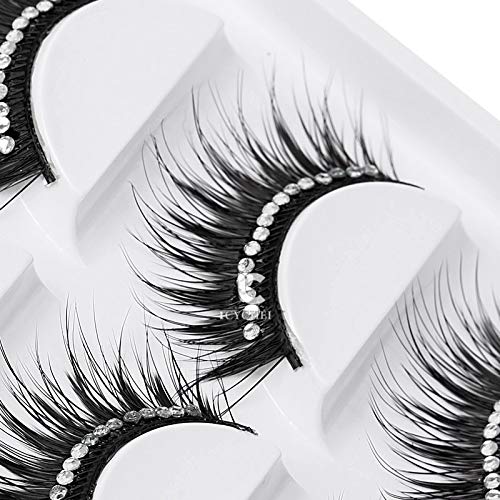 ICYCHEER 5 paia di ciglia finte con strass lucidi spessi e lunghe e passate a scena finte per feste e balli (TS052)