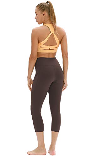 Icyzone Donna Sportivi Leggings 3/4 Pantaloni da Yoga (S, Burgundy)