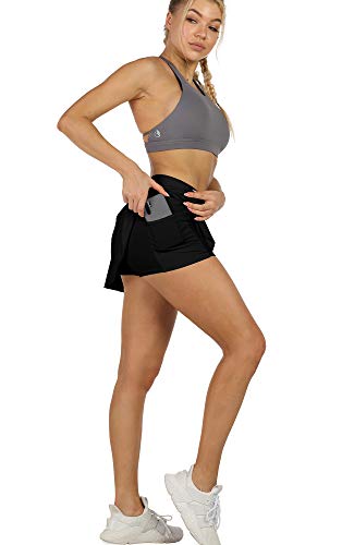 Icyzone - Gonne da Donna con Pantaloncini con Tasche Antivento Sportiva, per Allenamento, Corsa, Golf, Tennis -M-Nero