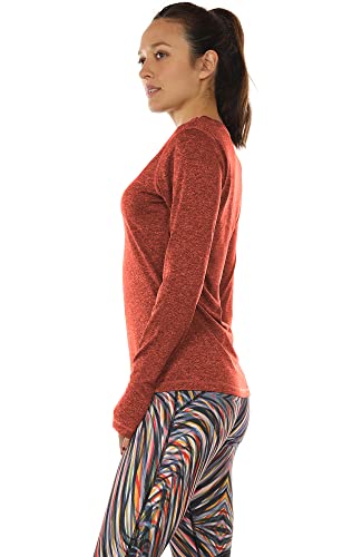 Icyzone Maglietta da Donna da Corsa Maniche Lunghe Sportiva con Fibbia per Pollice Elastico T-Shirt per Yoga Fitness Palestra (L,Burnt Ochre)
