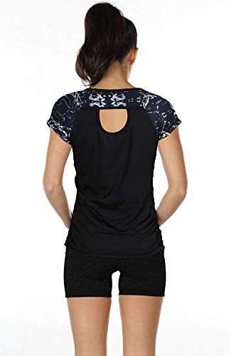 Icyzone Maglietta Sportiva Donna,Senza Schienale Maniche Corte vestibilità Slim Asciugatura Rapida Traspirante T-Shirt per Yoga Palestra Corsa (L,Monocromo)