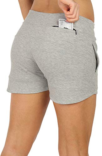 Icyzone Pantaloncini da Corsa Donna Cotone Sportivi Traspirante Cintura Regolabile con Tasche Fitness Jogging Allenamento (XL,Grigio)