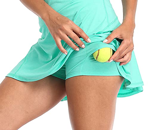 Icyzone Vestito Tennis da Donna,2 in 1 Gonna Golf Donna con Pantaloni vestibilità Slim con Tasca (XL,Verde Ghiaccio)