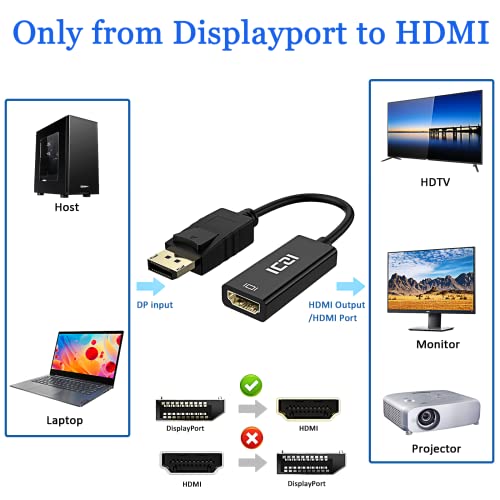 ICZI Adattatore DisplayPort a HDMI 4K 60hz, Convertitore Cavo DP Maschio su HDMI Femmina per 4K TV HDTV Monitor Proiettori Portatili e Altri