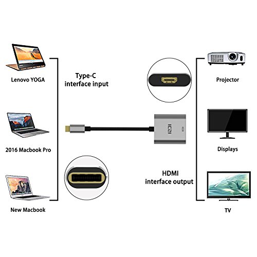 ICZI Adattatore USB C a HDMI 4K in Alluminio, Cavo Convertitore Type C per MacBook PRO 2016, Google Chromebook Pixel, Microsoft Lumia 950 / 950XL ed Altri Dispositivi USB Tipo - C (Grigio)