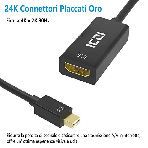 ICZI Adattatore Mini DisplayPort a HDMI, 4K Convertitore Maschio Mini DP (Thunderbolt 2) a Femmina HDMI per iMac, Mac Mini, Surface, Monitor, HDTV, Proiettori
