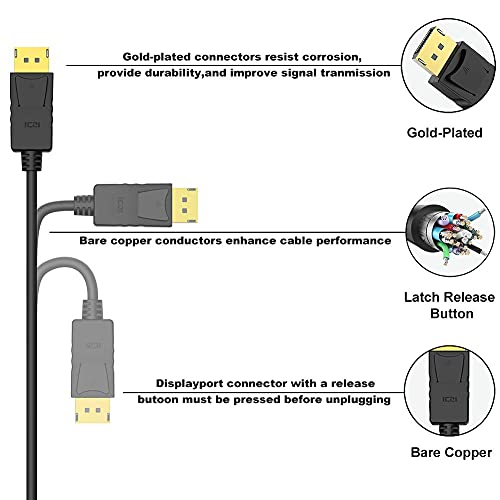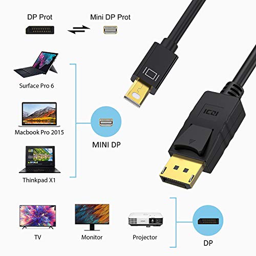 ICZI Contatti da Mini DisplayPort (Thunderbolt) a Displayport per cavi Displayport placcati in oro V1.2 4K Risoluzione Ultra HD Contatti placcati in oro 24K 6 piedi (1,8 m)
