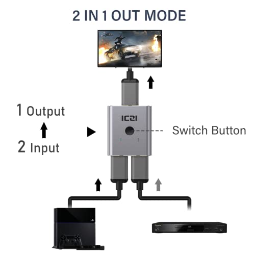 ICZI HDMI Switch 4K 60Hz, Bi-direzionale HDMI Splitter Automatico 1 In 2 Out HDMI Sdoppiatore per TV Stick, Lettore di Rete, Digital STB, PS4 PS5