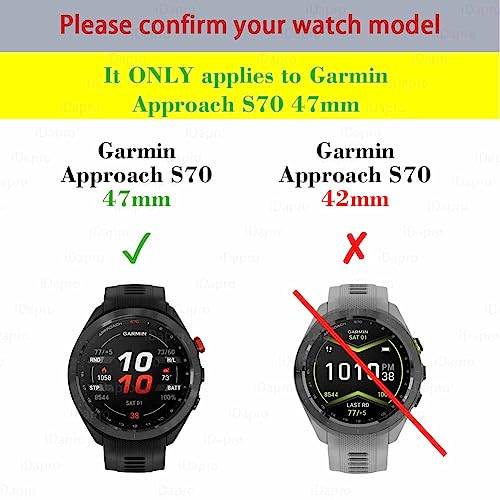 IDaPro Pellicola vetro per Garmin Approach S70 da 47 mm orologio [4 pezzi] vetro temperato Protezione antigraffio + tappi in silicone anti-polvere Cover Accessori