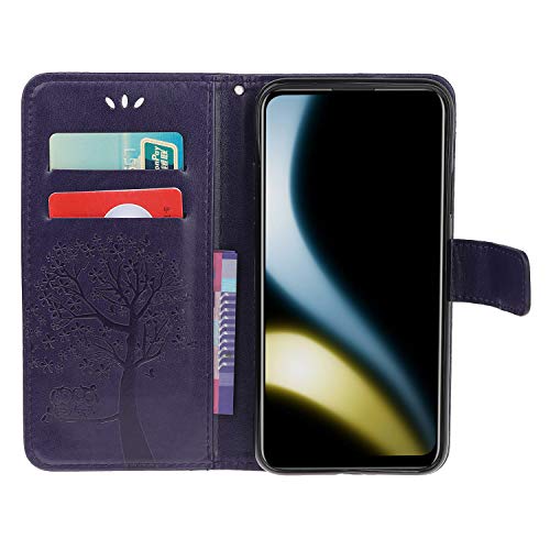 Idatog Cover per Samsung Galaxy S10E,[Disegno del Gufo] Custodia Retro a Libro Flip Case Portafoglio Cover in Pelle Wallet Magnetica Supporto Cover Cassa Protettiva (Viola Scuro)
