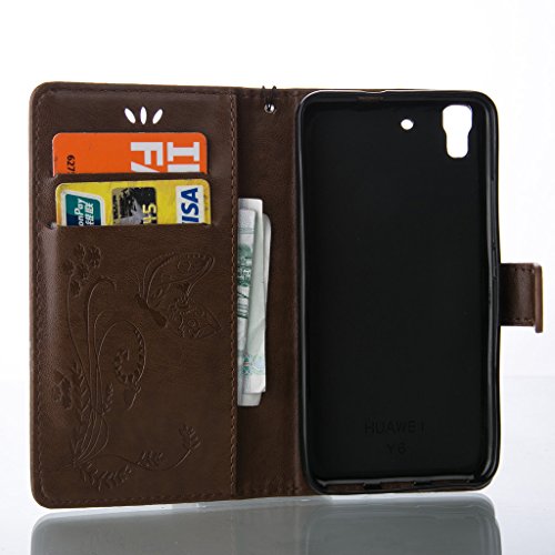 Idatog Custodia a libro per HTC Desire 626, con protezione per lo schermo in vetro temperato, chiusura magnetica, alta qualità, stile classico ed elegante, colorata, tema: farfalla, in pelle PU, con funzione di supporto e slot per carta di credito, perfetta per il vostro smartphone, Similpelle, Coffee, Huawei Y6