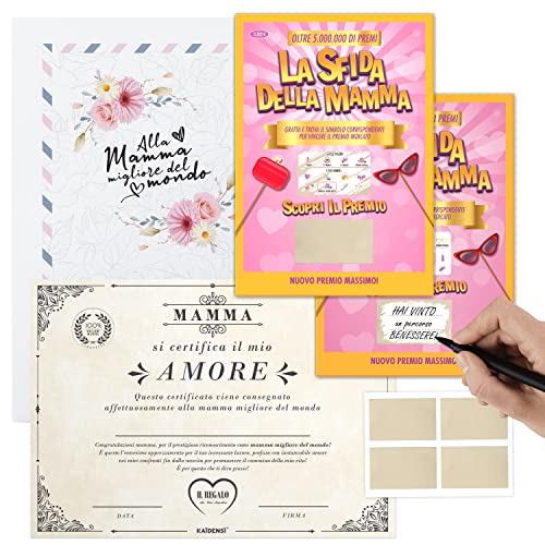 Pergamena con 2 gratta e Vinci Sfida della mamma - Kit regalo festa della mamma completo ✔️ - Un'idea regalo coi fiocchi per una mamma speciale. Quest'anno fa parlare di te per la festa della mamma e certifica tutto il tuo amore con un'idea originale per l'occasione!
