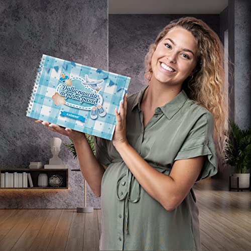 Idea Regalo Neonato Maschio Femmina - Libro Dei Ricordi Bambino dalla Nascita fino ai Primi Passi - Idee Regali Originali Bambini - Organizer Bimbo Bimba Originale Celeste
