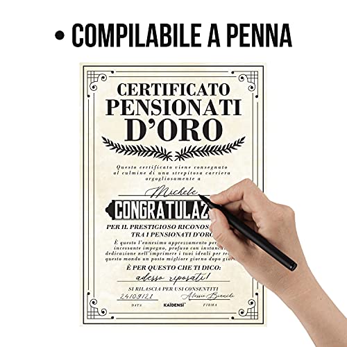 Certificato Pensionato d'oro - Congratulazioni per il prestigioso riconoscimento! - Un gadget pensione coi fiocchi, lascerai di stucco il ricevente grazie a quest'idea regalo originale, un'onoreficenza degna della pensionato!