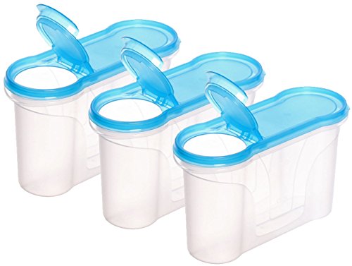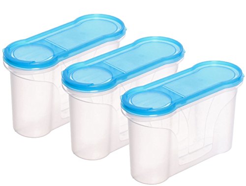 Idea-station scatole da Scatola 1 Litri, 3 Pezzi, Blu Trasparente, con Coperchio, impilabili, scatole di Dispenser, scatole di immagazzinaggio, contenitori per Alimenti, scatole di Cereali