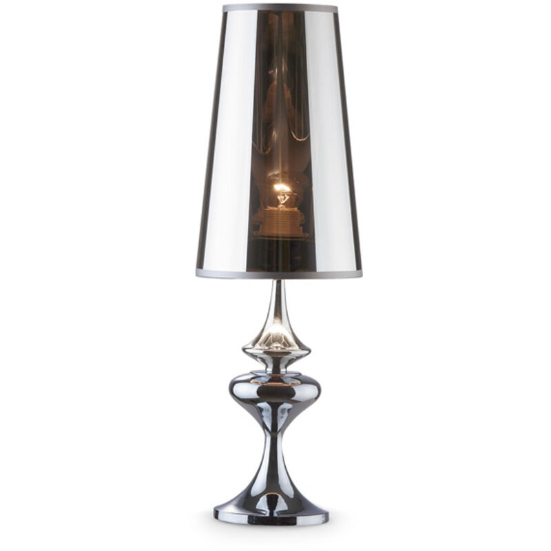 Base in metallo cromato. Paralume in lamina di PVC ignifuga colore cromo e semitrasparente. Ø 175 x H 555 mm max 1 x 60W E27 / 230V IP:20