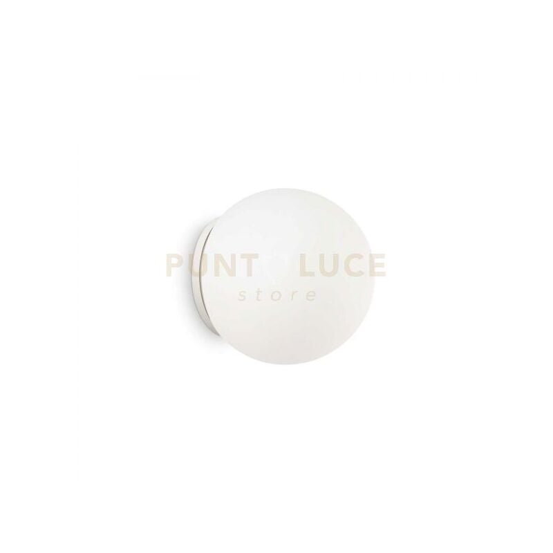 Applique con base e sistema di fissaggio in metallo bianco. Diffusore in vetro bianco soffiato e acidato.