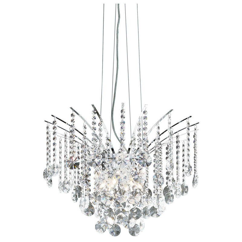 Collezione Audi-77 VETRO E CRISTALLO Elegnate e maestoso lampadario a 6 luci con pendagli ottagonali e tondi in cristallo molato. Lunghezza regolabile da dispositivi automatici..
