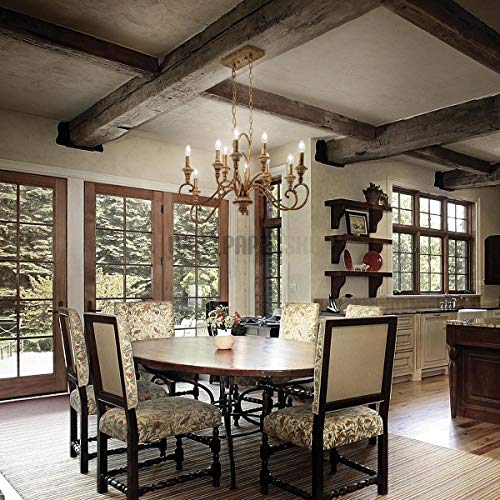 Struttura in metallo modellato artigianalmente. Elemento centrale e basi portalampada in resina. Decorato a mano con effetto invecchiato.