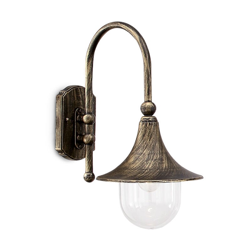 Collezione Cima STILE COUNTRY CHIC Applique a 1 luce con corpo luce interamente in alluminio pressofuso. Con finitura nero e oro antico. Diffusore in acrilico trasparente.