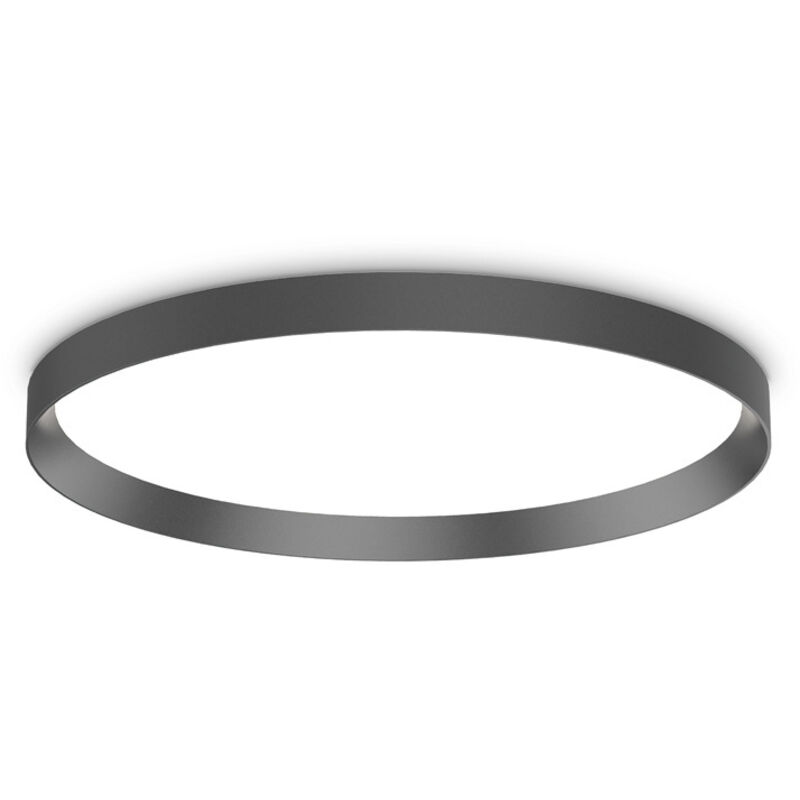 Lampade a plafone con base circolare, corpo luce in alluminio verniciato a polveri con finitura bianca o nera, ottica arretrata con diffusore in PMMA microprismatizzato con controllo dell'abbagliamento. Ø 600 x H 80 mm 53W 50000 h 3000 K 7500 lumen IP:40