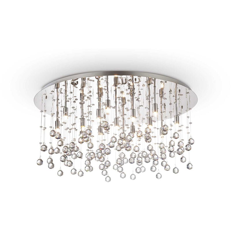 Collezione Moonlight CRISTALLI DI LUCE Plafoniera a 15 luci con montatura in metallo con finitura oro. Pendagli con ottagoni e sfere in cristallo molato..