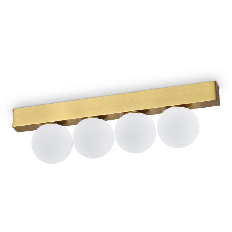 Collezione Ping Pong PICCOLE SFERE SATINATE Plafoniera Contemporanea Ping Pong Metallo Ottone Led Integrato 12W 3000K IP20 A++ h.9 D. L.30,9 P.6 Lampadina inclusa. Montatura in metallo rifinito con vernice a polveri. Diffusori con sfere in acrilico trasparente satinato. Driver integrato. Finiture: bianco, nero, ottone spazzolato.